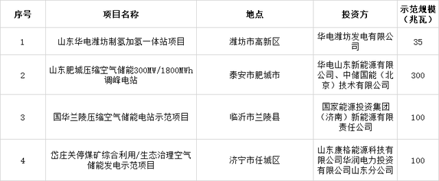 本此公布的示范項目總規(guī)模約達(dá)3.103GW,項目業(yè)主單位包括華能、大唐、華潤、三峽、華電、國家能源集團(tuán)、國家電投、中核、中廣核、山東電工電氣、國網(wǎng)山東、特變電工等多家企業(yè)。除常規(guī)的鋰電池類項目外,此次還有壓縮空氣儲能、制氫加氫一體站、空氣儲能等新技術(shù)示范項目。