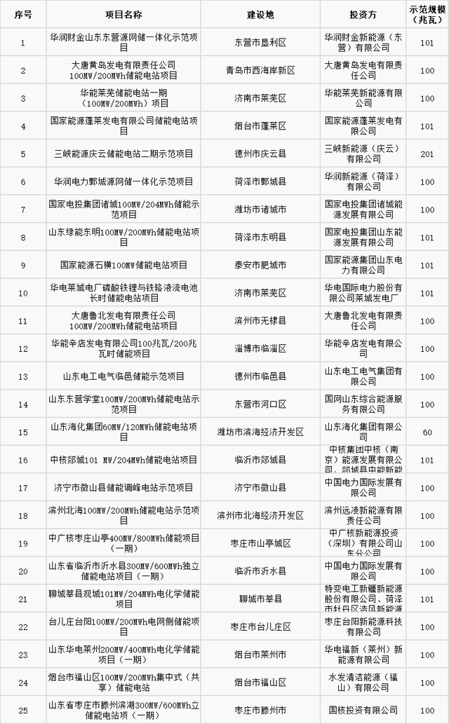 儲能在建設(shè)新型電力系統(tǒng)中具有重要地位,各地也紛紛布局儲能相關(guān)政策及示范項目,從而更好的推動新型儲能建設(shè)的發(fā)展。4月7日,山東省能源局根據(jù)《關(guān)于開展2022年度儲能示范項目遴選工作的通知》精神,經(jīng)各市推薦和專家評審,擬將25個鋰電池類項目、4個新技術(shù)類項目列為2022年度儲能示范項目(具體名單見表格)。