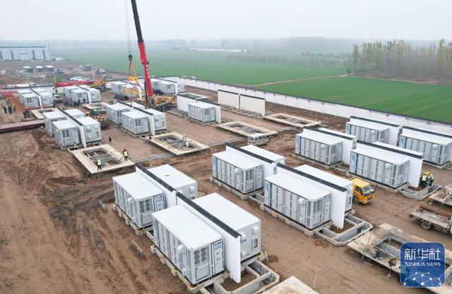 11月15日,工人在位于河北省衡水市故城縣軍屯鎮(zhèn)境內(nèi)的百兆瓦級(jí)獨(dú)立儲(chǔ)能電站建設(shè)工地施工。新華社記者楊世堯 攝