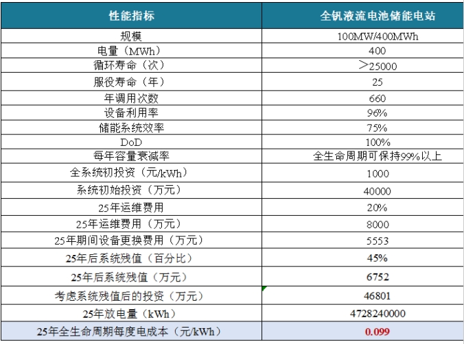 4小時全釩液流儲能系統(tǒng)全生命周期度電成本