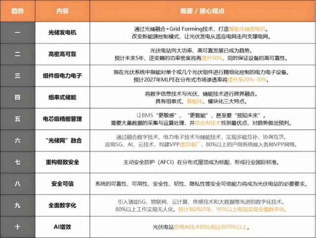 早在2022年,華為就公開展望了智能光伏發(fā)展十大趨勢(shì)。預(yù)測(cè)到2027年,95%以上的光伏電站實(shí)現(xiàn)全面數(shù)字化,應(yīng)用AI技術(shù)的比例將達(dá)到70%以上。