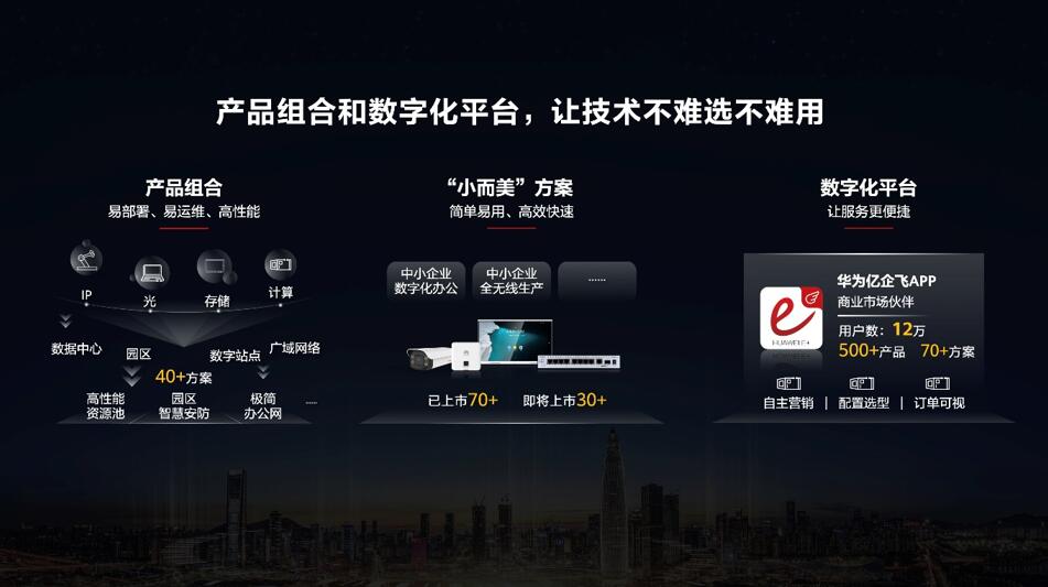 同時(shí),我們還打造了一站式的數(shù)字化平臺(tái),如華為億企飛APP。客戶和伙伴們可以通過(guò)這個(gè)平臺(tái),獲取豐富的產(chǎn)品庫(kù)、方案庫(kù)、案例庫(kù)等資源,以便更好地使用數(shù)字化產(chǎn)品和方案。