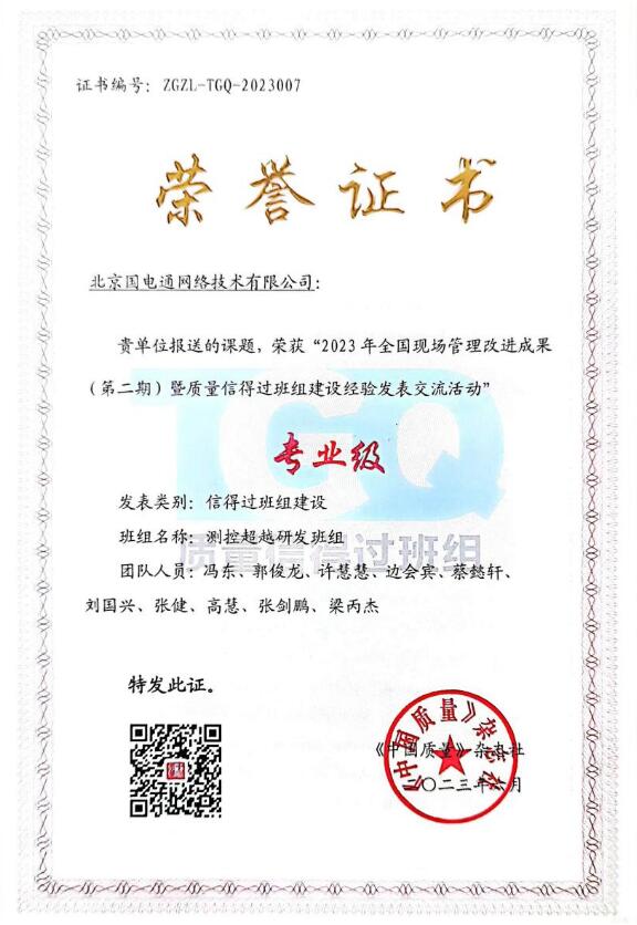 國網(wǎng)信產(chǎn)國電通“測(cè)控超越研發(fā)班組”獲得信得過班組建設(shè)二等獎(jiǎng)