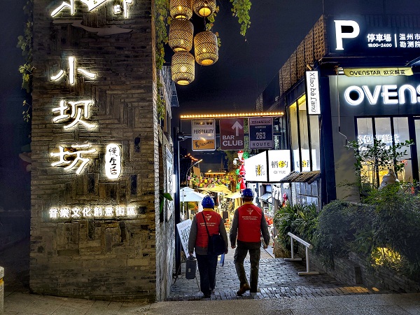 “小壩坊周邊設(shè)備巡視無異常……”12月24日,夜幕降臨,國網(wǎng)溫州供電公司針對(duì)小壩坊慢生活音樂文創(chuàng)街區(qū)開展供用電設(shè)施夜間特巡檢查,排查線路、設(shè)備缺陷隱患,并同步向沿街商鋪宣傳安全用電、節(jié)約用電知識(shí),以優(yōu)質(zhì)供電服務(wù)鼓濃老城特有的煙火氣,全力護(hù)航老街巷煥新“出圈”。