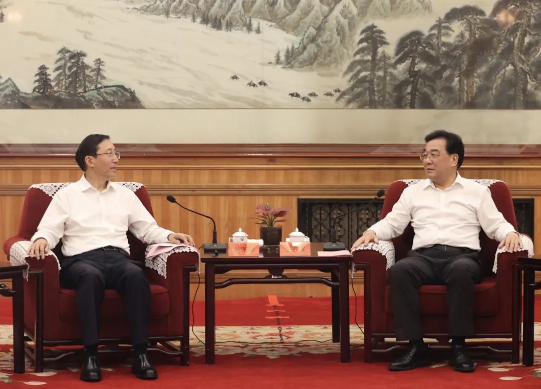 8月12日,國家電網(wǎng)有限公司董事長、黨組書記辛保安在西寧拜會(huì)青海省委書記信長星,省委副書記、省長吳曉軍。