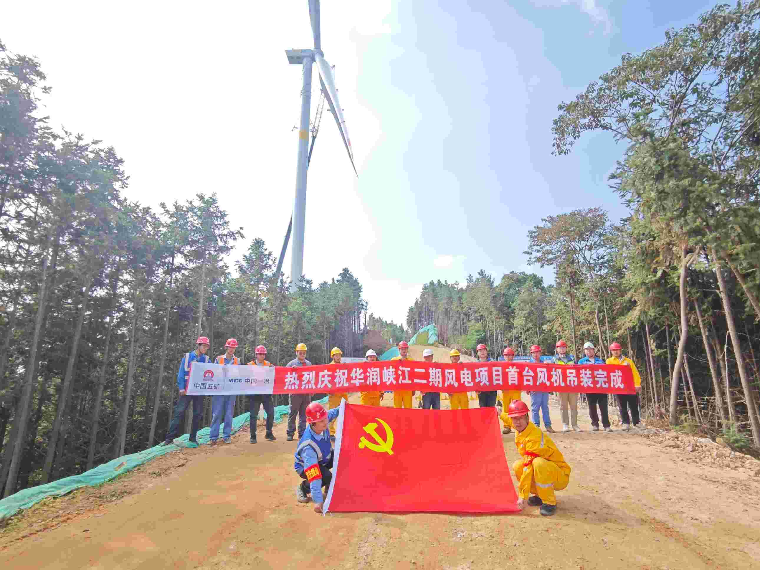 華潤電力江西公司黨員先鋒隊助力峽江二期100MW風電項目臺風機吊裝完成