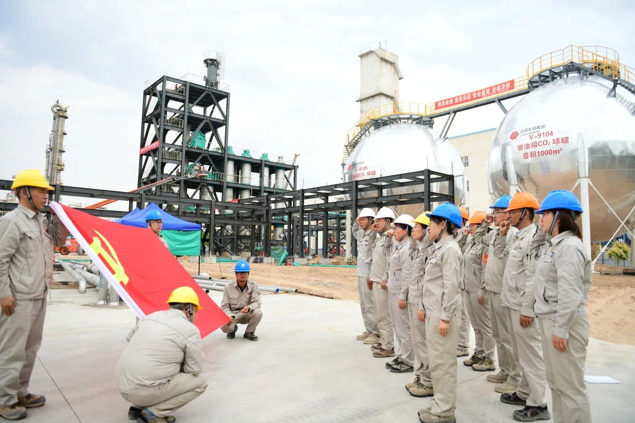 寧夏煤業(yè)煤制油化工指揮部聚甲醛二期項(xiàng)目部黨支部在300萬(wàn)噸年CCUS示范項(xiàng)目一期工程現(xiàn)場(chǎng)