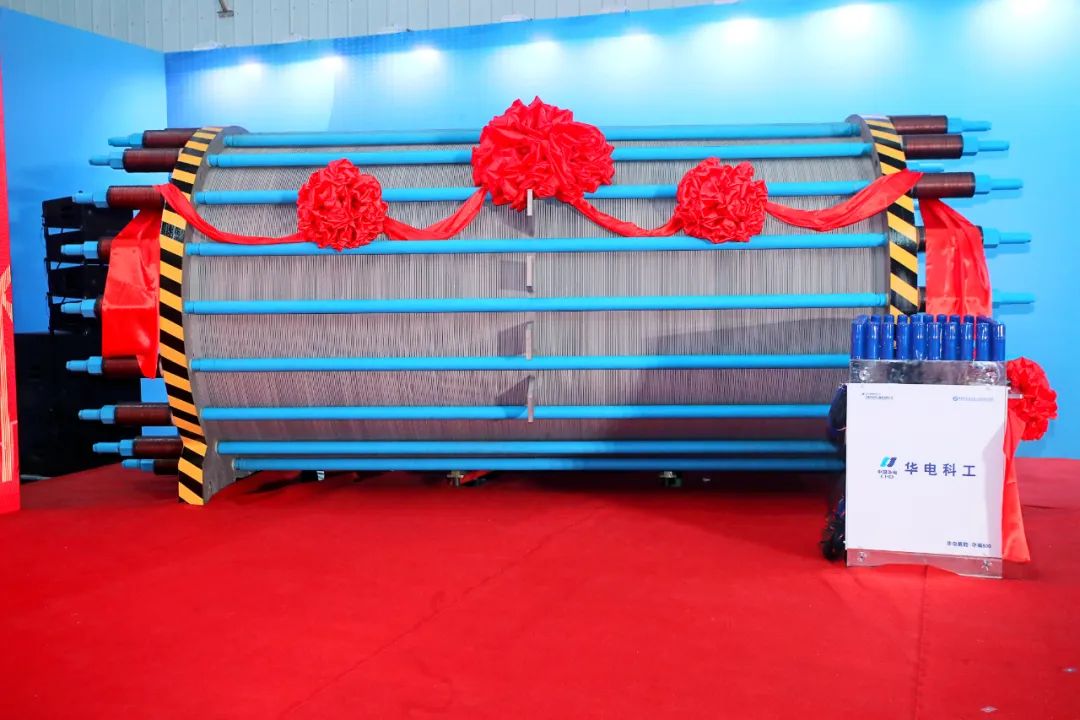 1月3日,由中國華電所屬中國華電科工集團(tuán)有限公司自主研發(fā)的3300標(biāo)方堿性電解槽及與中國科學(xué)院聯(lián)合開發(fā)的500標(biāo)方PEM電解槽正式下線、2.5兆瓦PEM電解槽實(shí)證平臺投用,標(biāo)志我國可再生能源電解水制氫裝備實(shí)現(xiàn)新突破,對加快構(gòu)建新型能源體系、實(shí)現(xiàn)“雙碳”目標(biāo)具有重要意義。中國工程院院士彭蘇萍,加拿大工程院院士深圳技術(shù)大學(xué)未來技術(shù)學(xué)院院長劉清俠,天津市北辰區(qū)委書記倪斌,區(qū)委副書記、區(qū)長徐暉,區(qū)委副書記閆峰,副區(qū)長、開發(fā)區(qū)黨工委書記(兼)李維東,集團(tuán)公司戰(zhàn)略規(guī)劃部總監(jiān)吳韶華、科技信息部副主任張宇龍,公司黨委書記、董事長彭剛平,黨委委員、副總經(jīng)理、總工程師李建標(biāo)出席活動(dòng)。