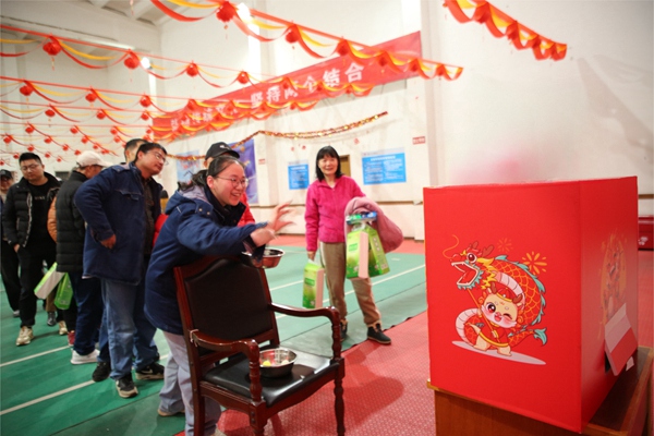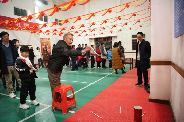 投擲準(zhǔn)頭、射箭、投壺以及套圈項(xiàng)目中,參與者們各顯身手,他們瞄準(zhǔn)目標(biāo),精準(zhǔn)投擲,每一次成功都引來觀眾的齊聲喝彩,現(xiàn)場(chǎng)氣氛持續(xù)升溫。蒙眼擊鼓項(xiàng)目考驗(yàn)的是感知力與方向感,參賽者蒙著眼睛憑借直覺摸索前行,擊鼓成功后喜悅之情溢于言表?;顒?dòng)現(xiàn)場(chǎng)氣氛熱烈,加油聲,歡笑聲,叫好聲,將活動(dòng)一次次推向高潮。大家一個(gè)接一個(gè)“打卡”闖關(guān),沉浸在新春的喜悅之中。
