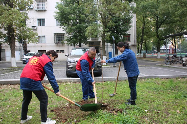 經(jīng)過一下午的辛勤勞動(dòng),25棵櫻花樹苗迎著春風(fēng),在石電小區(qū)的土地上“安家落戶”。最后,大家認(rèn)真在卡片上寫下“守護(hù)一片綠,留下一片美”“愛護(hù)環(huán)境,從我做起”等愛綠護(hù)綠宣傳標(biāo)語,給每棵小樹掛上了專屬標(biāo)簽。