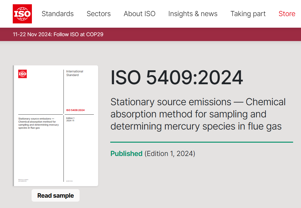 近日,由華能主導(dǎo)編制的國(guó)際標(biāo)準(zhǔn)《固定污染源排氣使用化學(xué)吸收法對(duì)煙氣中的汞進(jìn)行采樣和測(cè)定》(ISO 5409:2024)正式發(fā)布。