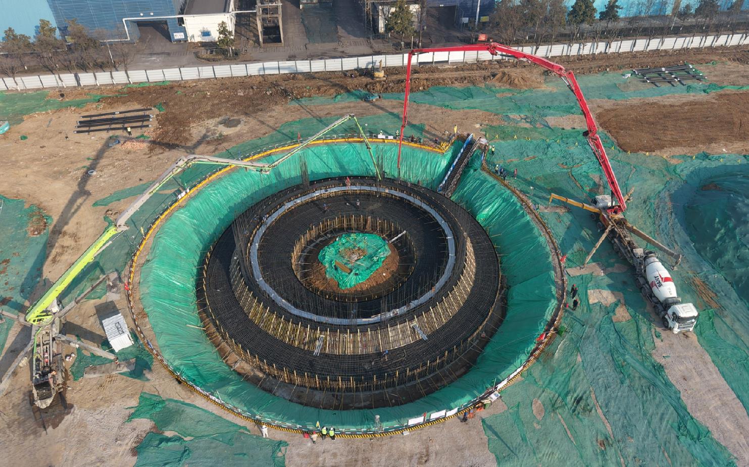 此次7號(hào)鍋爐和煙囪基礎(chǔ)采取不間斷接續(xù)施工方式,自1月17日7時(shí)40分開(kāi)始,歷經(jīng)4天4夜奮戰(zhàn),先后完成了兩區(qū)域大體積混凝土澆筑任務(wù)。7號(hào)鍋爐筏板長(zhǎng)45.9米、寬44.7米,基礎(chǔ)混凝土厚度2.3米,采用2臺(tái)63米汽車(chē)泵和1臺(tái)56米汽車(chē)泵,澆筑混凝土總量4673方。煙囪基礎(chǔ)為環(huán)板式,外直徑為38米,澆筑采取用二備一泵車(chē)配置,總澆筑方量達(dá)2451方。尤為值得一提的是,煙囪基礎(chǔ)自2024年12月26日開(kāi)挖,于2025年1月20日澆筑完成,僅歷時(shí)25天,打破了該公司煙囪基礎(chǔ)施工的最短工期紀(jì)錄。