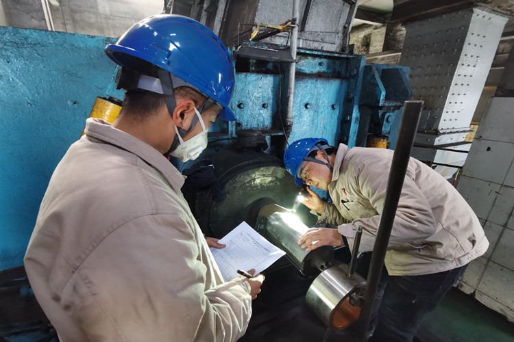 圖為點(diǎn)檢人員驗(yàn)收A碎煤機(jī)大軸軸頸項(xiàng)目