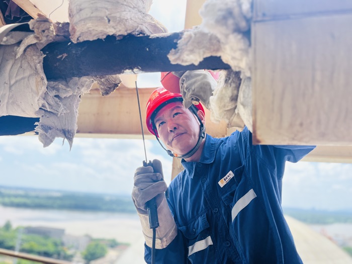 在高溫檢修現(xiàn)場(chǎng),每天都能看到檢修員工揮汗如雨,奮力拼搏的身影,設(shè)備有缺陷,機(jī)器壞了,那是不能等的,即便再炎熱,溫度再高,也要第一時(shí)間撲上去。在水泵旁、在火嘴邊、在送風(fēng)機(jī)下、在撈碴機(jī)上,檢修員工們總是一邊擦拭著汗水,一邊維修著設(shè)備,他們提出的口號(hào)是“勤消缺、精檢修、戰(zhàn)高溫、保供電”。