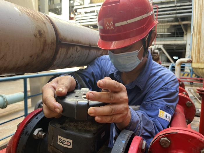 化學(xué)水處理計(jì)量泵突發(fā)損壞,汽機(jī)班組老員工周俊便帶領(lǐng)他的三人搶修小組第一時(shí)間趕到,他們一頭扎進(jìn)工作區(qū)域,整整一天都在忙碌的搶修,一天的最低氣溫是34度,最高氣溫是43度,他們的衣服不知道被汗水浸濕了多少次。搶修時(shí),他們?yōu)榱私禍兀苯佑美渌疂差^。