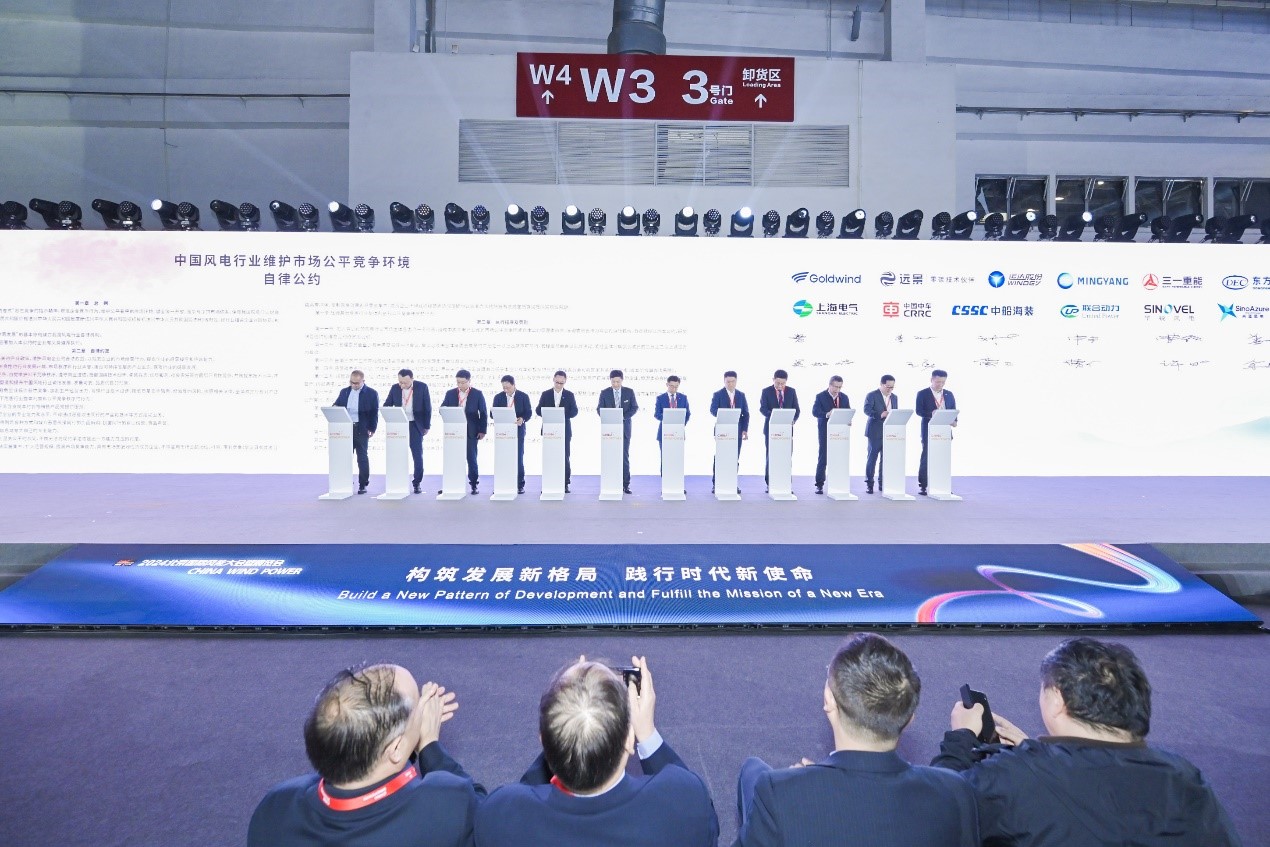 會上,金風科技、遠景能源、運達股份、明陽智能、三一重能等12家整機企業(yè),共同簽署了《中國風電行業(yè)維護市場公平競爭環(huán)境自律公約》。