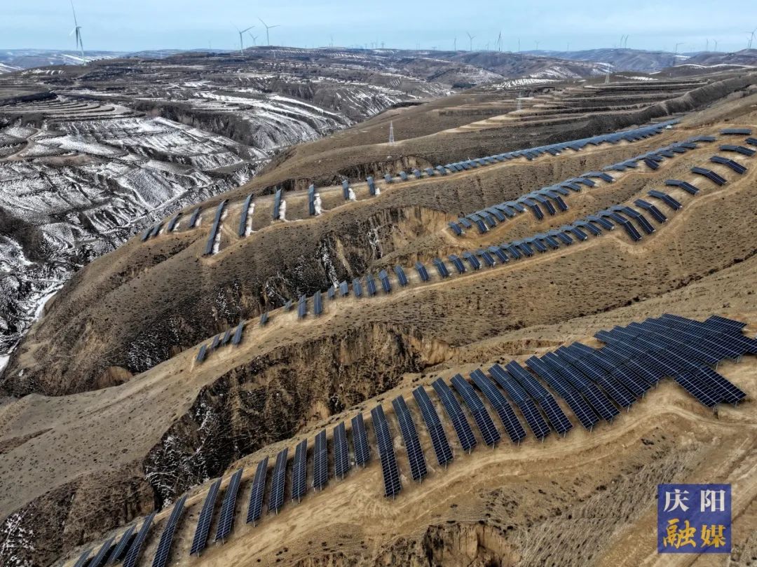 早春時節(jié),環(huán)縣重重山溝梁峁間殘雪未消,寒風獵獵,極目之處,黃土地雖蕭瑟蒼茫,卻并不荒涼。一座座風力發(fā)電機乘風轉動、一排排光伏電板熠熠生輝、一條條高壓銀線臨空飛躍……如今,這里已成為新能源投資的熱土,“遍地開花”的新能源項目,勾勒出一派“風光”無限的壯麗圖景。