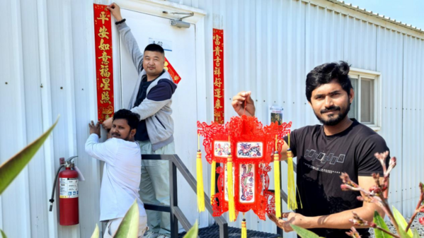 沙特國王港項(xiàng)目部精心策劃了一系列慶?;顒?dòng),讓中外員工共度歡樂祥和的中國年。團(tuán)拜會(huì)上,項(xiàng)目部向全體員工送上新春祝福,感謝大家的辛勤付出,并鼓勵(lì)團(tuán)隊(duì)在新的一年再接再厲,共創(chuàng)佳績(jī)。中外員工歡聚一堂,傾情演出,互致問候,現(xiàn)場(chǎng)氣氛熱烈喜慶。除夕夜,項(xiàng)目部組織了包餃子活動(dòng),大家紛紛動(dòng)手參與,搟皮、包餡、捏褶,忙得不亦樂乎。許多外籍員工在中國同事的指導(dǎo)下,第一次體驗(yàn)制作餃子的樂趣,感嘆這一傳統(tǒng)習(xí)俗的獨(dú)特魅力。年夜飯上,項(xiàng)目食堂特別準(zhǔn)備了豐盛的中式年菜,中外員工圍坐一堂,共享美食,暢談文化習(xí)俗。大家紛紛表示,將以更加飽滿的熱情投入工作,為項(xiàng)目高質(zhì)量履約貢獻(xiàn)力量,共同推動(dòng)“一帶一路”建設(shè)邁上新臺(tái)階。