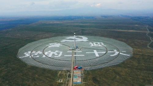 光熱之城上的東方明珠。從海拔3000米的青藏高原塔拉灘龍羊峽眺望,一座高達(dá)210米的吸熱塔熠熠閃光。古老的母親河畔,方圓2.12平方公里的“光熱之城”分布著近3萬面20平方米的定日鏡,這里就是青海共和50兆瓦光熱發(fā)電項(xiàng)目。