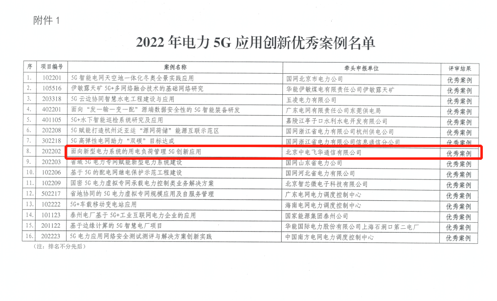 6月2日,國網(wǎng)信通股份中電飛華“面向新型電力系統(tǒng)的用電負(fù)荷管理5G創(chuàng)新應(yīng)用”案例榮獲中國電力企業(yè)聯(lián)合會(huì)2022年電力5G應(yīng)用創(chuàng)新優(yōu)秀案例獎(jiǎng)。