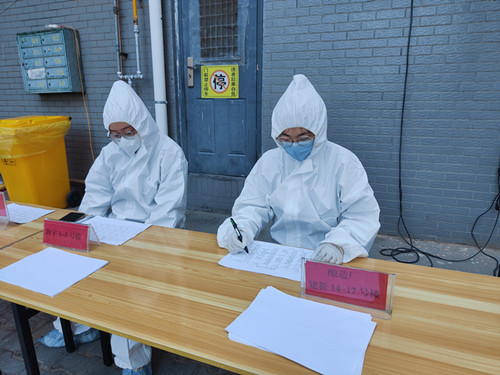 8月7日,五點(diǎn)鐘天還未亮,志愿者們便來(lái)到包聯(lián)的建新佳苑社區(qū)開始布置核酸檢測(cè)現(xiàn)場(chǎng)。“穿好防護(hù)服后,各自就位,準(zhǔn)備開始核酸檢測(cè)。”大家紛紛穿好防護(hù)服各就各位。“請(qǐng)大家提前出示健康碼,保持一米距離,佩戴好口罩,做好個(gè)人防護(hù)”負(fù)責(zé)維護(hù)秩序的賈生耀在隊(duì)首和隊(duì)尾之間來(lái)回走動(dòng)嘴里一直喊著大家排好隊(duì)做好防護(hù);另一邊,李正陽(yáng)在核酸檢測(cè)“核心”環(huán)節(jié)之一的崗位上,為檢測(cè)人員掃碼并確認(rèn)其信息是否正確。全副武裝的他表示:這工作看似很簡(jiǎn)單沒有什么技術(shù)含量,但其實(shí)更多的是需要細(xì)心,要“人碼”一致,還要盯住做到“十人一組”。“大爺,您是本小區(qū)的嗎?住在幾棟幾單元?”在做完核酸登記信息的區(qū)域中,一個(gè)小小的白色身影被數(shù)列隊(duì)伍淹沒,只能聽見她高八度的聲音在不停詢問著每一個(gè)登記的人員,她就是配電帶電作業(yè)處里唯一的一名姑娘——劉佳敏。別看她是個(gè)女孩子,卻是“中氣十足”,建新佳苑大多數(shù)都是老人,歲數(shù)大一點(diǎn)的一些老人耳朵不太靈敏,聲音小了就聽不見在說什么,于是她耐心地一遍又一遍大聲詢問著,直到信息統(tǒng)計(jì)結(jié)束。當(dāng)天雖然下了一陣雨,可是溫度卻并沒有降下來(lái),幾個(gè)人穿著防護(hù)服仿佛在“蒸桑拿”一般,里面的衣服已經(jīng)完全浸濕,他們開玩笑著說:“這可一點(diǎn)都不遜色于穿絕緣服工作,不管黃衣服還是白衣服,注定是要‘濕身’。”