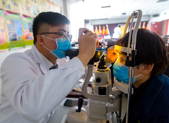 “這些年,庫爾勒市春季沙塵氣候比較頻繁,前來眼科醫(yī)院就診的患者以近視、散光、斜弱視、淚道病、干眼癥、翼狀胬肉癥狀較多” ,負(fù)責(zé)驗光的防盲健教組長辛葉醫(yī)生認(rèn)為,“自然環(huán)境影響是一個方面,更多的在于用眼不衛(wèi)生”,他建議要關(guān)注用眼過度的問題,隨著電視、電腦、移動設(shè)備越來越普及,近距離用眼成為職場人最主要的生活、工作狀態(tài),大量的信息通過視覺傳遞加重了眼睛的負(fù)擔(dān),這是造成用眼過度的首要因素,也是大范圍開展眼健康普查的重要原因。