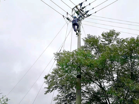 10千伏虎京線梯后山支線,羊圈山配變380伏羊圈山TB3.2號桿(四方桿),倒桿斷線,配電管理所報修人員樂禮培接到95598報修信息,與客戶聯(lián)系后,趕到現(xiàn)場查看,是380伏四方桿,倒桿斷線。從此桿接下戶線3戶,隔離電源,報告領(lǐng)導(dǎo),需要換桿換線搶修。配電管理所任海忠主任立即組織施工隊(duì)到現(xiàn)場進(jìn)行勘察,確定施工方案,審批搶修物資。受災(zāi)戶楊徳久跟工作人員說:“昨晚上一夜下大雨,6點(diǎn)左右聽到房后蹦的一聲響,我以為是打雷,起床開燈,燈不亮,要燒水,電磁爐也沒有反應(yīng),再轉(zhuǎn)到電表旁看看總閘給跳,嚇我一跳,電表箱懸在空中,電桿倒了,等緩過神來才打95598報修電話。你們報修師傅來到,我心才落下!現(xiàn)在,我高興!感謝供電公司,感謝各位師傅,把電桿換成高的,總線也換成巴掌寬的叫什么線該?”凃師傅告訴他,這叫集束導(dǎo)線。不單只是他們這里,在端午節(jié)期間配電管理所消除了5個安全隱患,提高了供電可靠性。