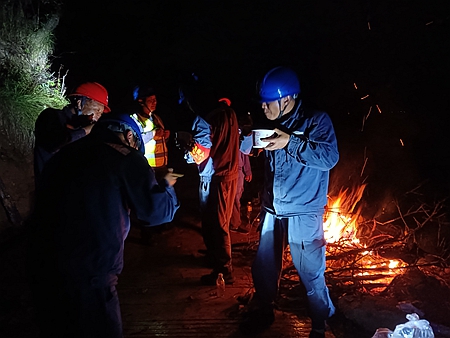 幾天前我到小灣供電所一個偏遠(yuǎn)的搶修現(xiàn)場,因?yàn)橄掠甑脑?,搶修工作延遲到下午16時多才開始,直到凌晨3點(diǎn)多結(jié)束。期間23時左右因大雨而工作暫停,大家才燒了壺水燙了個方便面墊了個底。