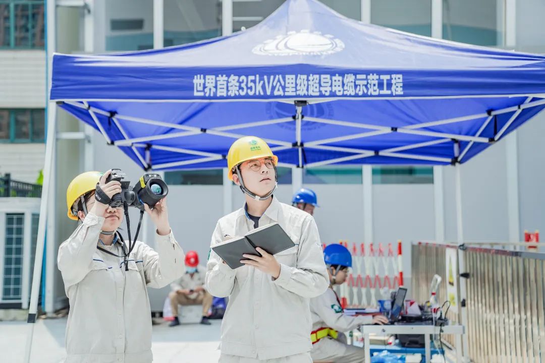 上海市南供電公司運維檢修員工為超導(dǎo)輸電工程紅外測溫。