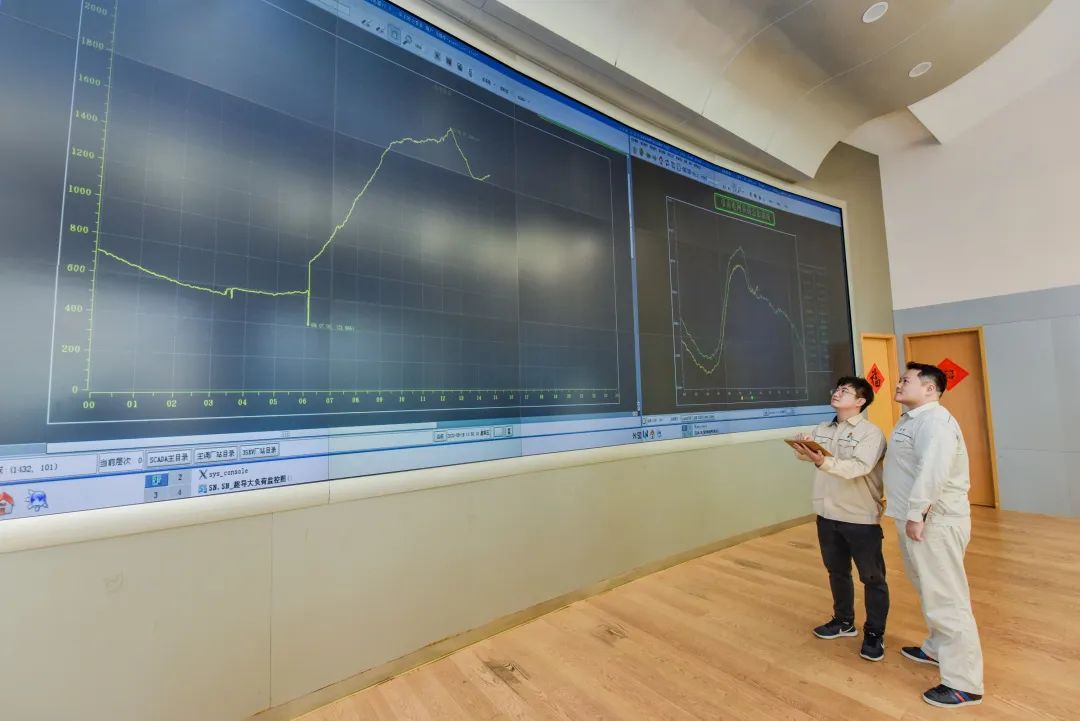 上海市南供電公司調(diào)控運維員工監(jiān)控超導(dǎo)輸電工程運行參數(shù)。