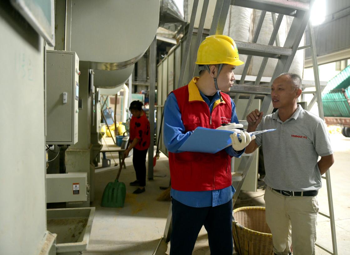 糧食種植和生產(chǎn)是“國(guó)之大者”,確保糧食和重要農(nóng)戶的可靠用電,一直以來都是宏宇公司積極服務(wù)鄉(xiāng)村振興的重點(diǎn)工作??紤]到秋收將至,為確保大批稻谷加工高峰期期間用電安全,宏宇公司成立秋收保電小組,提前深入田間地頭對(duì)涉農(nóng)供電線路和設(shè)備進(jìn)行排查,上門走訪轄區(qū)內(nèi)農(nóng)機(jī)站、糧庫(kù)等重要用戶,及時(shí)消除可能存在的安全隱患,助力農(nóng)戶秋收顆粒歸倉(cāng)。
