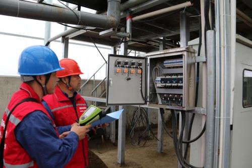 國網(wǎng)蠡縣供電公司工作人員對養(yǎng)殖場內(nèi)糞污無害化處理設(shè)備進(jìn)行測溫檢查 龐亞杰 攝