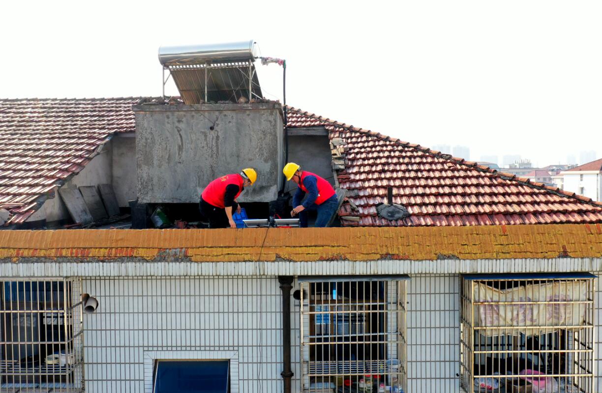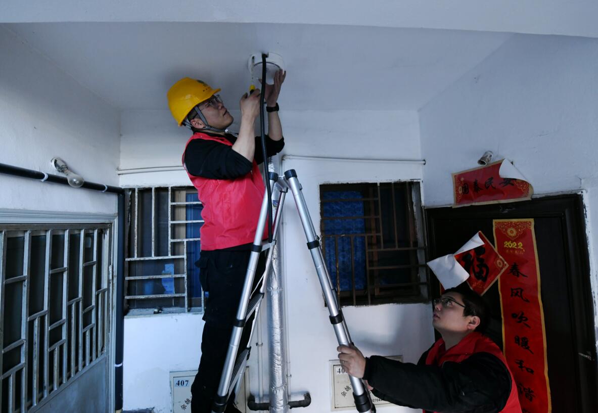 屋頂上安裝光伏板、樓道內(nèi)安裝節(jié)能燈、布線后固定線卡……當(dāng)天,志愿者們按照既定計劃,拿著材料以及自備工具開始對古建小區(qū)剩余樓道進行改造,3個多小時之后,每戶居民家門口的樓道燈煥然一新。“今年,我們計劃對100個樓道進行光伏改造,照亮居民的回家之路。”吳長浩說。