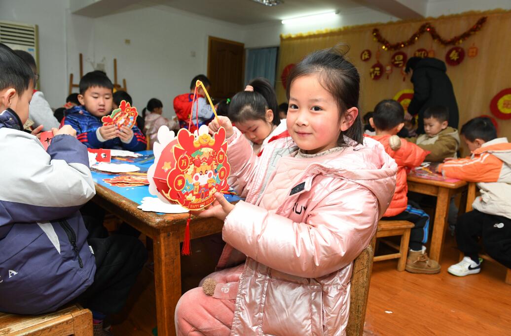 隨后,志愿者與孩子們還分組一起動(dòng)手制作了“龍年小燈籠”,在志愿者的指導(dǎo)一下,整理素材、拼接卡紙、綁流蘇……孩子們一步步依次組裝。制作過(guò)程中,孩子們異常興奮,有說(shuō)有笑,不一會(huì)兒他們就制作完成一盞盞漂亮的小燈籠??粗约旱膭趧?dòng)成果,孩子們的笑臉更加燦爛了。