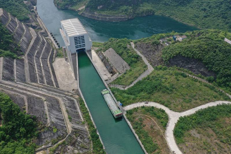 當(dāng)日,位于貴州省遵義市余慶縣境內(nèi)的烏江構(gòu)皮灘水電站通航工程開始試運(yùn)行。構(gòu)皮灘水電站通航工程線路總長(zhǎng)2306米,由上下游引航道、三級(jí)垂直升船機(jī)和兩級(jí)中間渠道組成。投入試運(yùn)行后,500噸級(jí)船舶可從貴陽(yáng)的開陽(yáng)碼頭依次通過構(gòu)皮灘、思林、沙沱、彭水,在重慶涪陵進(jìn)入長(zhǎng)江。