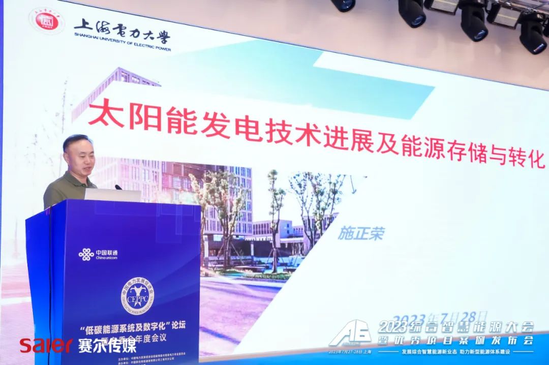 施正榮先生做太陽能發(fā)電技術進展及能源存儲與轉(zhuǎn)化主題報告