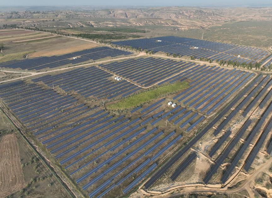 走進(jìn)清水河光伏項(xiàng)目現(xiàn)場,整齊遼闊的太陽能光伏板像“藍(lán)色海洋”,在發(fā)出綠色電能的同時,還有效遮擋了暴曬的陽光,守護(hù)板下植被。該項(xiàng)目在高茂泉窯村配套投資建設(shè)了清水河光伏公園及清水河沿黃河高質(zhì)量發(fā)展展覽館、村口樓牌、形象雕塑等硬件設(shè)施,將高茂泉窯村打造成為清水河縣新農(nóng)村旅游打卡地。該項(xiàng)目通過光伏發(fā)電與水土保持、農(nóng)牧業(yè)和旅游業(yè)相結(jié)合的“光伏+環(huán)境綜合治理”生態(tài)修復(fù)模式,實(shí)現(xiàn)了清潔能源和土地資源的高效利用,有效推動了當(dāng)?shù)芈糜螛I(yè)的蓬勃發(fā)展,積極改善當(dāng)?shù)厣鷳B(tài)環(huán)境。