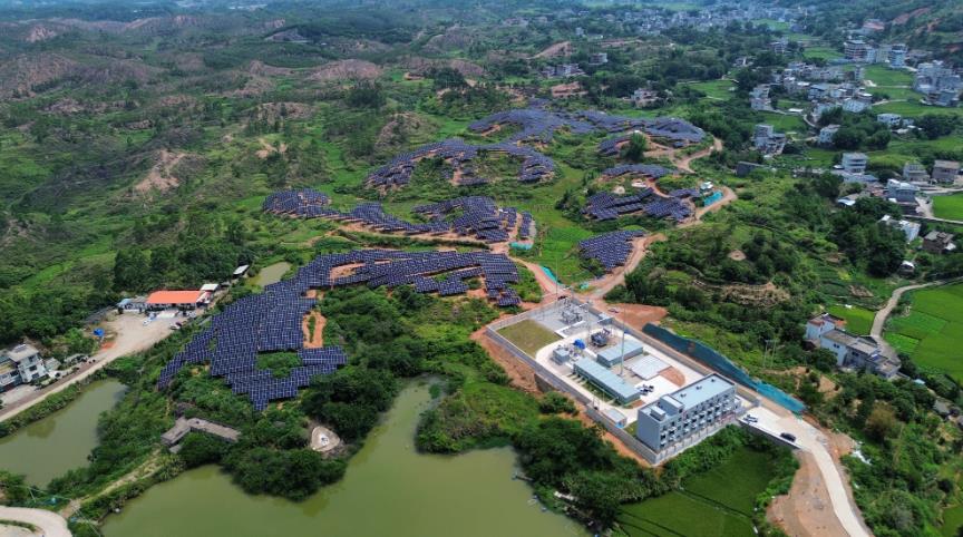 五華黃泥寨光伏項(xiàng)目是梅州市五華縣首個集中式大型光伏發(fā)電項(xiàng)目,總裝機(jī)容量70兆瓦,占地約1420畝,總投資約3.36億元。項(xiàng)目采用農(nóng)光互補(bǔ)模式,利用光伏板下種植農(nóng)作物及養(yǎng)殖雞、鴨等相結(jié)合,實(shí)現(xiàn)光伏發(fā)電與農(nóng)業(yè)創(chuàng)收雙贏,拓寬農(nóng)民增收渠道。該項(xiàng)目通過農(nóng)光互補(bǔ)模式,不僅有效利用土地資源,還能對項(xiàng)目建設(shè)地的水土保持、防風(fēng)固沙起到一定的保護(hù)作用。此外,通過植物腐爛后的再循環(huán)可以有效改善項(xiàng)目建設(shè)地的生態(tài)循環(huán)。