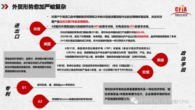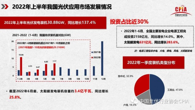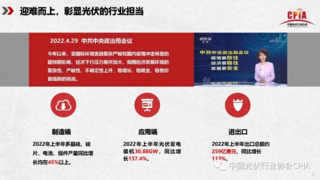 2022年7月21日,由中國光伏行業(yè)協(xié)會主辦的“光伏行業(yè)2022年上半年發(fā)展回顧與下半年形勢展望研討會”采用線上直播形式順利召開。中國光伏行業(yè)協(xié)會名譽理事長王勃華出席會議并作“2022年光伏行業(yè)上半年發(fā)展回顧與下半年形勢展望”報告。