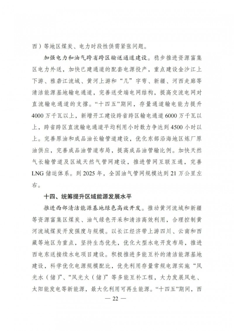 關(guān)于印發(fā)《“十四五”現(xiàn)代能源體系規(guī)劃》的通知