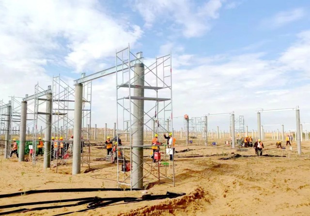 蒙西庫(kù)布其沙漠200萬(wàn)千瓦光伏治沙項(xiàng)目施工現(xiàn)場(chǎng)