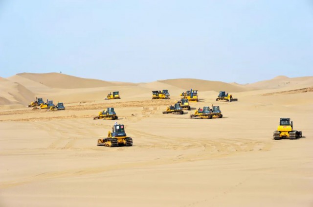 進(jìn)入12月,庫(kù)布其沙漠的氣溫已經(jīng)降至近零下20攝氏度。在庫(kù)布其基地項(xiàng)目先導(dǎo)工程建設(shè)現(xiàn)場(chǎng),機(jī)器的轟鳴聲打破了冬日沙漠的寂靜,由達(dá)拉特旗組織實(shí)施的先導(dǎo)工程,包括場(chǎng)平及水、電、路、網(wǎng)、訊等基礎(chǔ)設(shè)施的建設(shè)工作正在有序推進(jìn)。