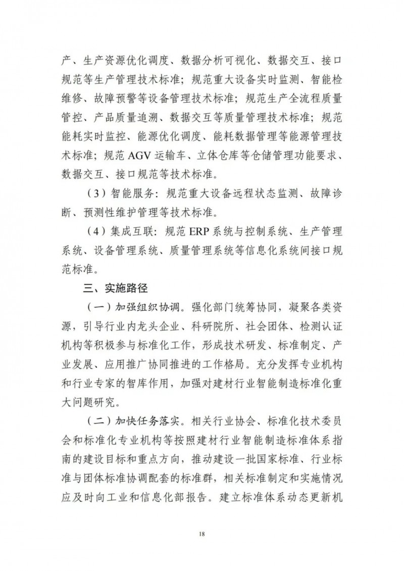 為貫徹落實(shí)《國(guó)家標(biāo)準(zhǔn)化發(fā)展綱要》,加強(qiáng)智能制造標(biāo)準(zhǔn)的統(tǒng)籌規(guī)劃,切實(shí)發(fā)揮標(biāo)準(zhǔn)對(duì)推動(dòng)建材行業(yè)智能制造發(fā)展的支撐和引領(lǐng)作用,工業(yè)和信息化部依據(jù)《建材工業(yè)智能制造數(shù)字轉(zhuǎn)型行動(dòng)計(jì)劃(2021-2023年)》和《國(guó)家智能制造標(biāo)準(zhǔn)體系建設(shè)指南(2021版)》,組織編制了《建材行業(yè)智能制造標(biāo)準(zhǔn)體系建設(shè)指南(2021版)》?,F(xiàn)印發(fā)給你們,請(qǐng)結(jié)合本行業(yè)(領(lǐng)域)、本地區(qū)實(shí)際,在標(biāo)準(zhǔn)化工作中貫徹執(zhí)行。