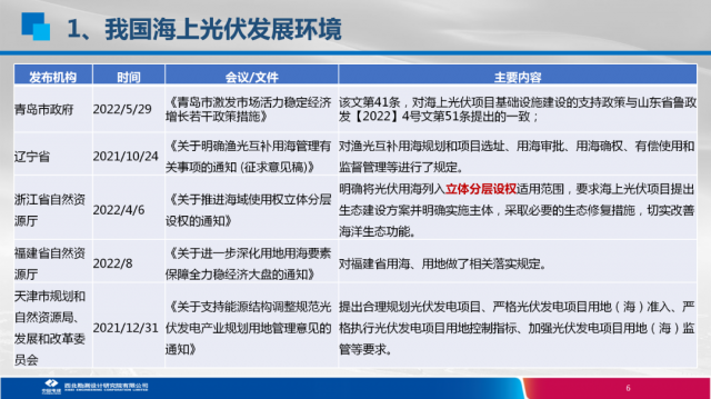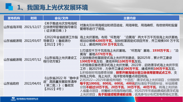 近年,隨著新能源裝機(jī)需求的增長及雙碳目標(biāo)提出,山東、浙江、江蘇、福建等多個(gè)東部沿海省份由于土地稀缺,均加快布局海上光伏建設(shè),陸續(xù)出臺(tái)支持海上光伏發(fā)展的相關(guān)政策。除了分布式、大基地、海上正成為光伏應(yīng)用的重要場景和爭奪重點(diǎn)。