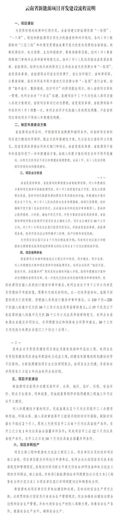 日前,云南省能源局發(fā)布《新能源項目開發(fā)建設流程說明》。說明指出,州(市)人民政府結合自身資源稟賦、招商引資需要,組織編制開發(fā)方案(包含組織形式、企業(yè)基本條件和優(yōu)選評審參數等)。