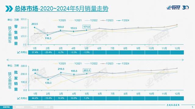 隨著“以舊換新”政策落地實(shí)施、各地相應(yīng)政策措施出臺與跟進(jìn),加之車市新品價格戰(zhàn)階段性降溫,5月乘用車市場進(jìn)入相對較好的發(fā)展階段。據(jù)乘聯(lián)會最新統(tǒng)計(jì)數(shù)據(jù)顯示,5月全國乘用車市場零售171萬輛,同比下降1.9%,環(huán)比增長11.4%,1-5月累計(jì)零售807.3萬輛,同比增長5.7%。