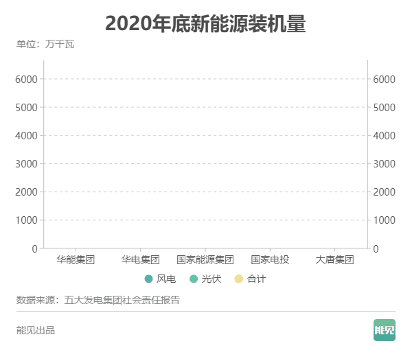 2021年是業(yè)界公認的“碳中和元年”。實現(xiàn)“雙碳”目標,必須大力發(fā)展新能源,構(gòu)建以新能源為主體的新型電力系統(tǒng)。因此,我們也統(tǒng)計了2021年底五大發(fā)電集團新能源裝機情況圖(華電數(shù)據(jù)缺失),另附2020年底的統(tǒng)計圖作為對比。