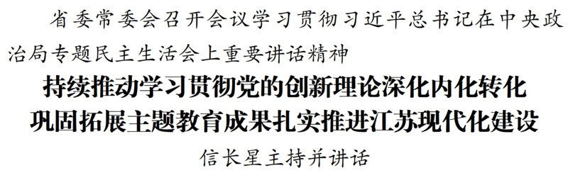 1月8日,江蘇省委常委會(huì)召開(kāi)會(huì)議,深入學(xué)習(xí)領(lǐng)會(huì)習(xí)近平總書記在中央政治局專題民主生活會(huì)上的重要講話和中央通報(bào)精神,認(rèn)真對(duì)照檢查,明確改進(jìn)方向。省委書記信長(zhǎng)星主持會(huì)議并講話。省委常委同志交流學(xué)習(xí)體會(huì)。會(huì)上通報(bào)了省委常委會(huì)專題民主生活會(huì)查擺問(wèn)題整改落實(shí)、主題教育省級(jí)層面專項(xiàng)整治情況。