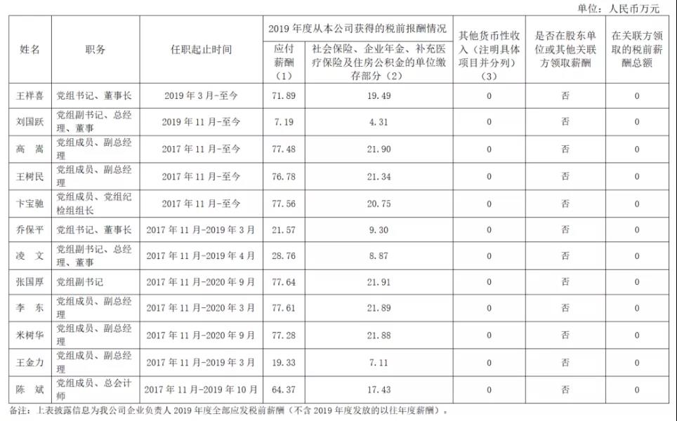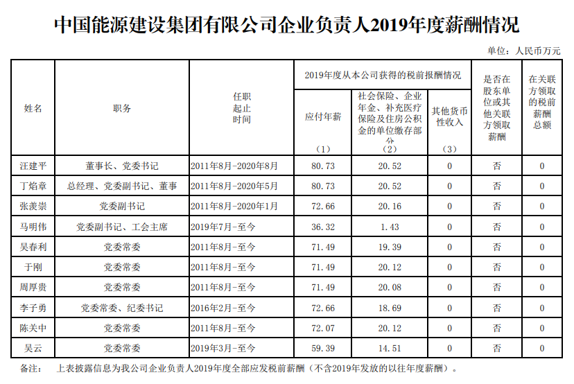 中國電力建設(shè)集團(tuán)有限公司企業(yè)負(fù)責(zé)人2019年度薪酬情況