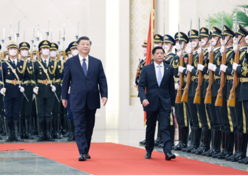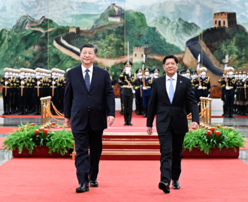 習(xí)近平歡迎馬科斯就任菲律賓總統(tǒng)后首次訪華。習(xí)近平指出,這是你首次正式訪問東盟以外國家,你也是今年中方接待的首位外國領(lǐng)導(dǎo)人。這充分體現(xiàn)了中菲關(guān)系的密切程度,也說明雙方在彼此外交格局中占有重要位置。中菲是一衣帶水的近鄰。在兩國上千年交往史上,以誠相待、守望相助始終是中菲關(guān)系主流,也是兩國人民共有的寶貴精神財富。48年前,你的父親同中國老一輩領(lǐng)導(dǎo)人洞察時局、順應(yīng)大勢,共同作出中菲建交的歷史性決定。此后近半個世紀(jì),無論國際風(fēng)云和菲律賓國內(nèi)政局如何變化,你和你的家族一本初衷,矢志推動中菲友好,這份情誼彌足珍貴。希望你這次訪華不僅是一次“懷舊之旅”,更是一次“開創(chuàng)之旅”。中方始終把菲律賓放在周邊外交優(yōu)先方向,堅(jiān)持從戰(zhàn)略和全局高度看待中菲關(guān)系。我愿同你保持經(jīng)常性戰(zhàn)略溝通,全面規(guī)劃雙邊關(guān)系下步發(fā)展,做互幫互助的好鄰居、相知相近的好親戚、合作共贏的好伙伴,為兩國人民帶來更多福祉,為地區(qū)和平穩(wěn)定貢獻(xiàn)更多正能量。
